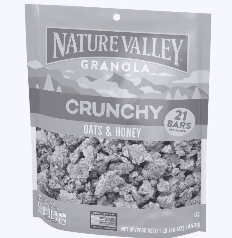 De igual manera, las cajas de cereal representan falsamente los contenidos como si fueran saludables, con solo llamarlo “100 % granola natural” e incluir imágenes de un campo abierto y una cabaña.